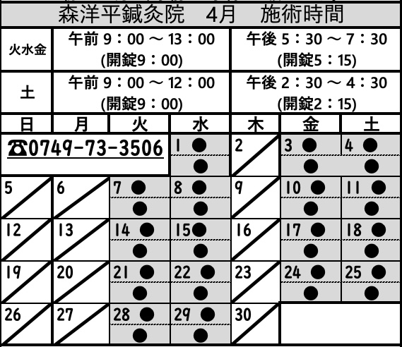 日曜・月曜の月6回 京都で施術を始めました。施術時間は早朝6時〜12時