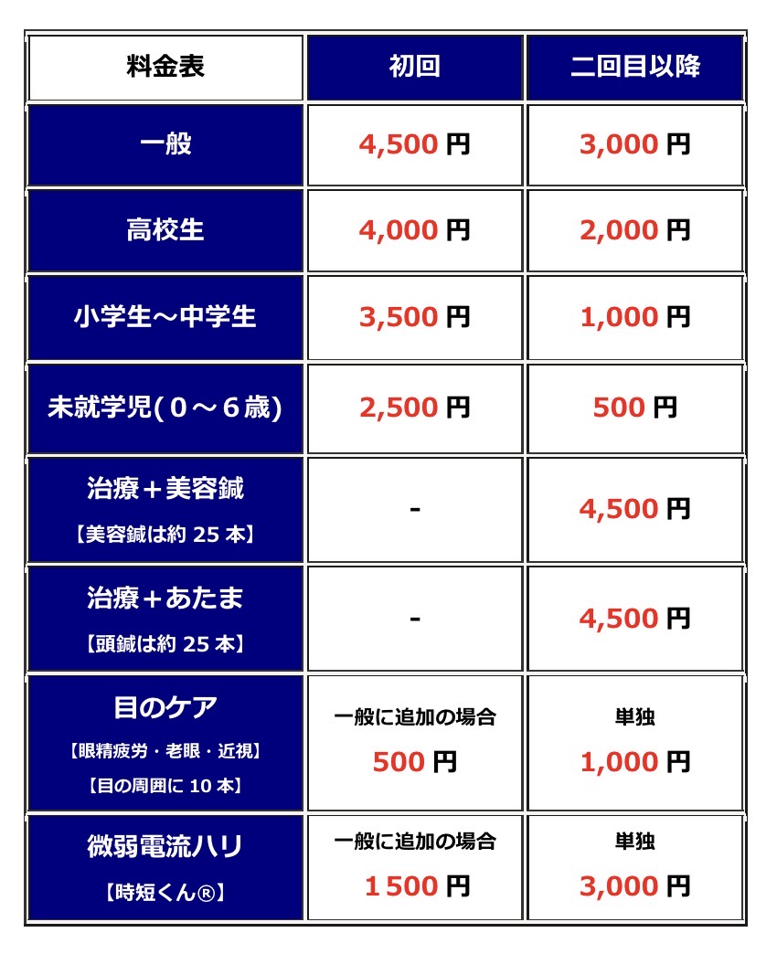 当院では、“良かろう!安かろう!“をモットーに通いやすい値段設定にしております。